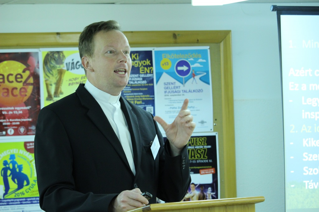 Gábor Miklós szólt Szent II. János Pál, XVI. Benedek és Ferenc pápa fiatalokhoz való viszonyáról és a három pápa ifjúságpasztorációs koncepciójáról. Az előadás keretében bemutatták a 2015-ben tartott országos ifjúságpasztorációs tanulmányi napok záródokumentumát, mely egyfajta országos ifjúsági stratégia alapjának is tekinthető.
