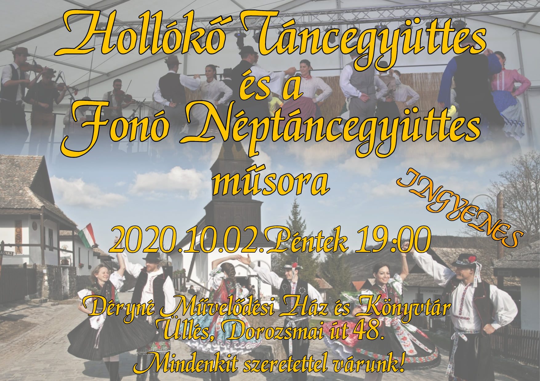 Üllésen színes programok várják a látogatókat októberben. Október 2-án a Hollókő Táncegyüttes és a Fonó Néptáncegyüttes lépnek fel a művelődési ház színpadján. Másnap, október 3-án a „Tökös-Nap” elnevezésű Dísztök és terméskiállításra invitálják az embereket, ahol lecsót és sült tököt kóstolhatnak, valamint az évszaknak megfelelően tököt faraghatnak, és kézműves foglalkozáson vehetnek részt. Október 6-án Pál Feri atya, mentálhigiénés szakember érkezik a településre és tart előadást. Előadásának középpontjában: „Vajon minden jogos sérelmünk, fájdalmunk, hiányunk ellenére tudjuk-e igazán szeretni az életet?„ A helyszínen dedikálással egybekötött könyvárusítás is lesz. Október 5. és 17. között tekinthető meg a Déryné Művelődési Ház és Könyvtárban Sziráki Lászlóné Dudás Ilona Szín-játék című festménykiállítása. Október 9-én, a 16 éven felüliek élményfestésen vehetnek részt az alkotóházban. A foglalkozást Farkasné Németh Ibolya tartja. Gyalogtúra indul október 22-én 16.30-tól a művelődési ház elől. A túra 6-10 km hosszúságú lesz, és Csóti Vilmosné vezeti majdAz eseményekről további részleteket a plakátokon olvashatnak.