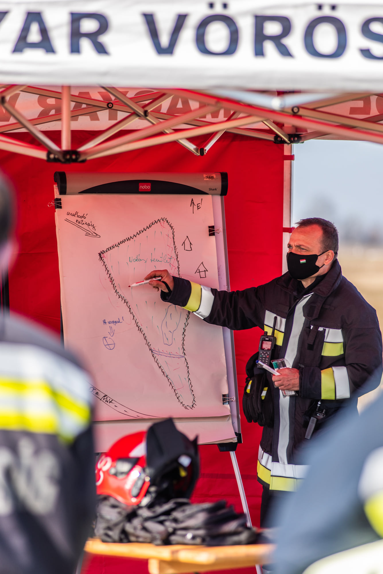 Mórahalom külterületén találkoztak hétfőn az ország tűzoltásvezetői. A nádassal borított, füves területen lebonyolított gyakorlat a koronavírus elleni védekezésre vonatkozó szabályok betartása mellett zajlott.