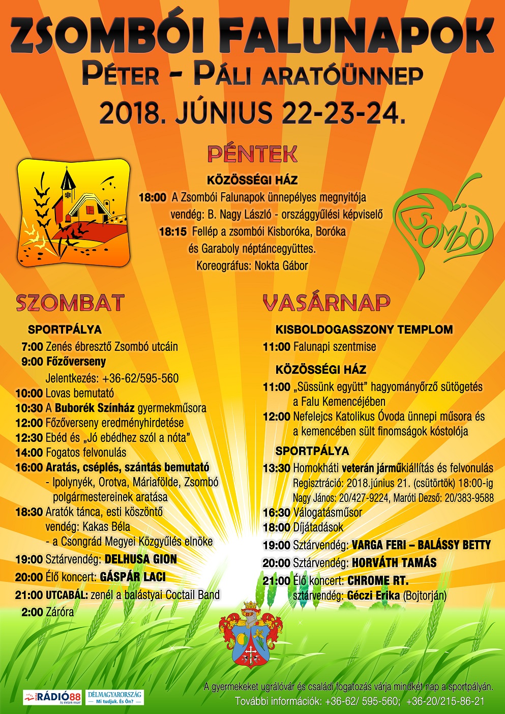 Zsombói Falunapok az aratóünnep jegyében június 22-től 24-ig